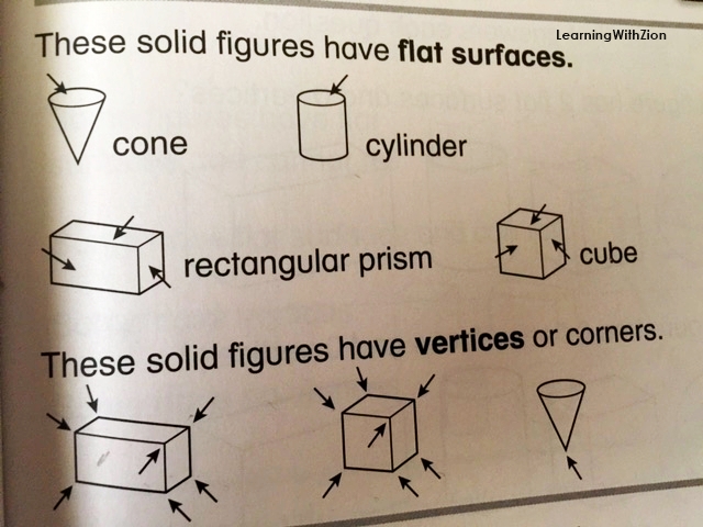 When you have a two-dimensional shape like a cone, cube, cylinder, and rectangular prism, determining the amount of vertices becomes more complicated. You have to count the vertices from a three-dimensional angle while also keeping in mind, flat surfaces, make up most 3 D shapes. A cube for instance is just a bunch of 2D Squares joined together. While some have argued that a cone has no vertex because of the rounded meeting point, a cone actually had 1 Vertex as you can see in the picture below. The picture used below is from a popular math text-book used in schools across America.